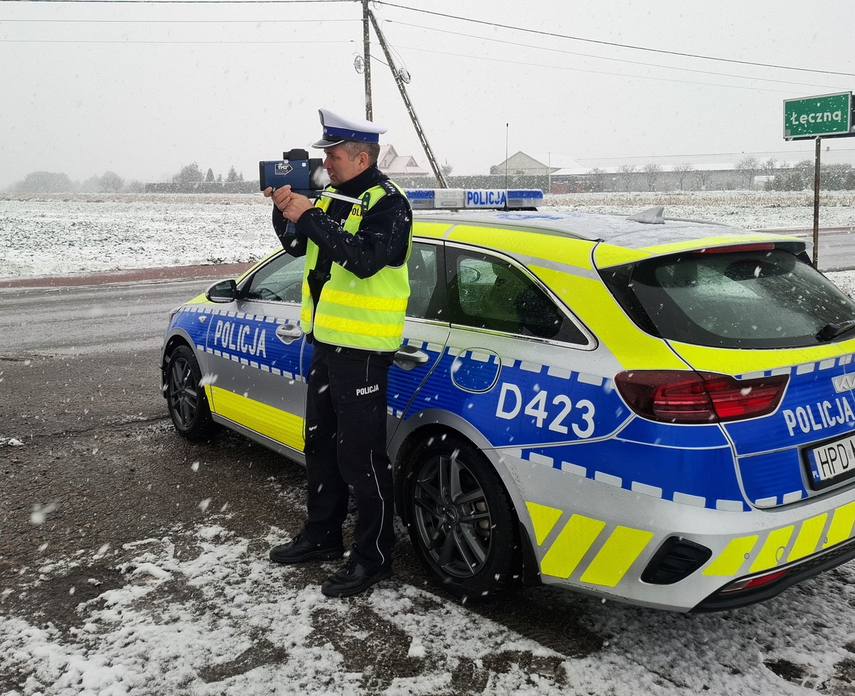 Na terenie powiatu łęczyńskiego prowadzimy działania „Prędkość”. Sprawdzamy przede wszystkim czy kierujący pojazdami przestrzegają obowiązujących ograniczeń prędkości, reagujemy również na inne naruszenia przepisów ruchu drogowego. Pamiętajmy, że przyczyną wielu tragicznych w skutkach zdarzeń drogowych jest właśnie nadmierna prędkość. W związku z opadami śniegu jezdnie mogą być śliskie. W takich warunkach droga hamowania jest wydłużona. Apelujemy o ostrożność!