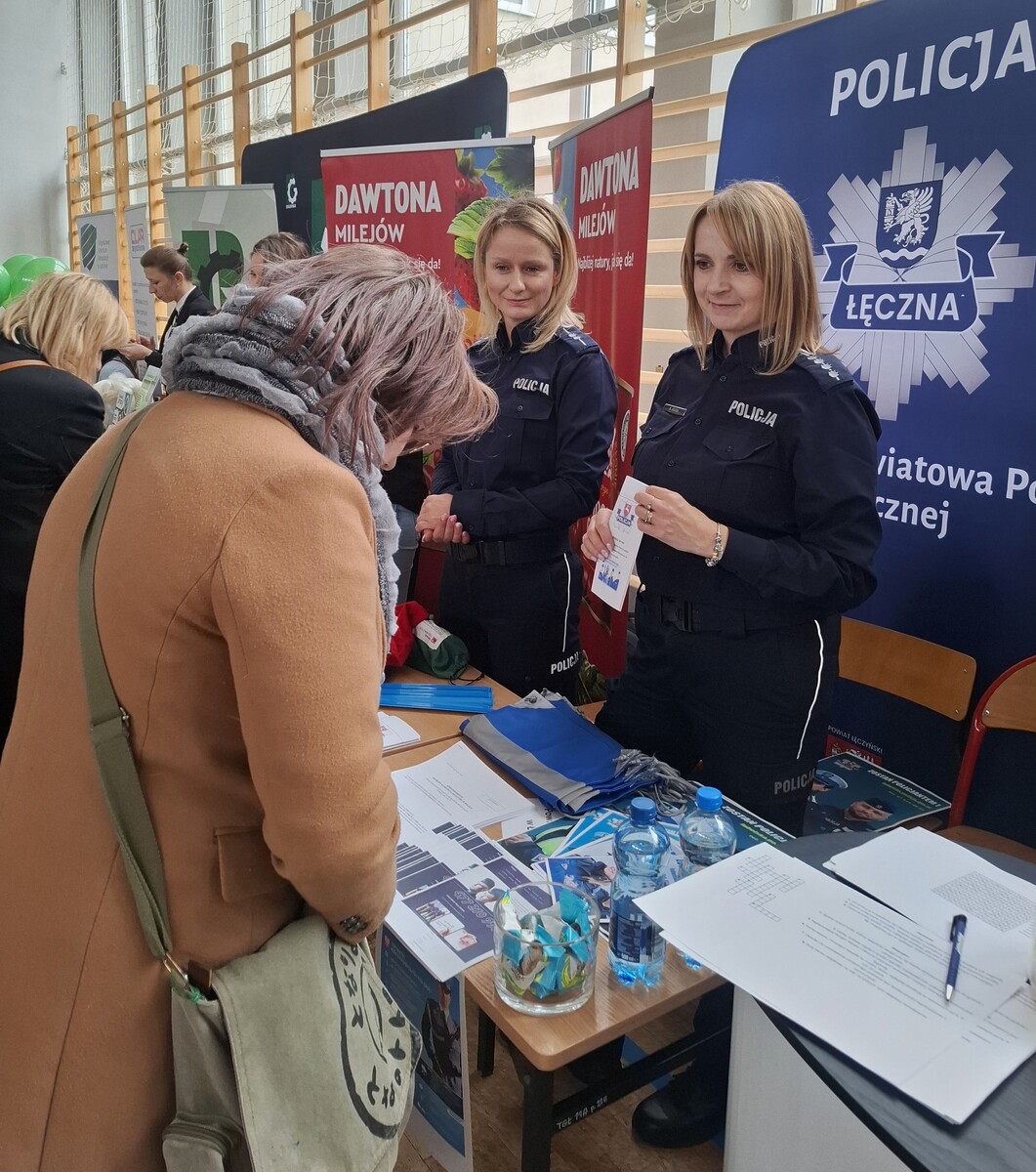 Nie zabrakło również stoiska informacyjnego przygotowanego przez przedstawicieli Komendy Powiatowej Policji w Łęcznej. Stoisko cieszyło się dużym zainteresowaniem, zwłaszcza przez młodzież. Osoby poszukujące pracy miały możliwość bezpośredniego uzyskania szczegółowych informacji dotyczących służby w Policji.